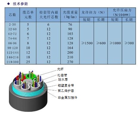 GYFTA型光缆是非金属加强构件、松套层绞填充式、铝-聚乙烯粘结护套通信用室外光缆