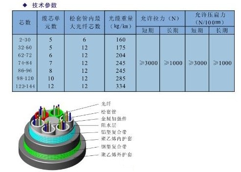 金属加强构件松套层绞填充式铝-聚乙烯粘结护套光缆