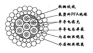 产品名称: W7PFAPP-12.04mm七芯氟塑料PFA绝缘分相屏蔽及总屏蔽双钢丝铠装承荷探测电缆