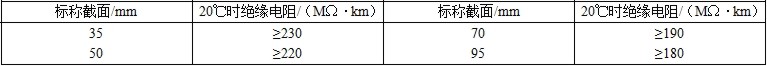 1)在20℃±5℃的温度下,绝缘线新的绝缘电阻应符合表3的规定