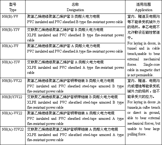 耐火电缆NH-VV适用于工频额定电压0.6/1kV及以下配电线路或工业装置中有耐火要求的固定敷设场所使用。