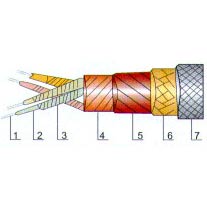 (1)、导体铜芯或镍芯 (2)、聚四氟绕包,玻纤编织或F46注塑或云母带绝缘 (3)、玻纤 (4)、高温玻纤布绕包 (5)、云母带 (6)、玻纤布绕包 (7)、外屏蔽护套 ![]()