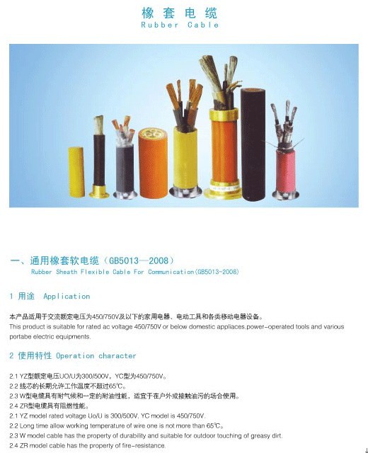 YC、YCW通用橡套软电缆 制造依据: GB5013.4-1997 JB8735.2-1998,本产品采用的标准与国... [详细]