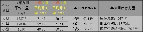 如图所示:今年九月开工率同比去年出现大幅下降,大型企业同比开工下滑8.7%;中型企业下滑18.62%;幅度最大的当属小型企业,降幅高达19.55%。而环比八月来看,无非是温水煮青蛙、"金九不金",开工增长不到0.5%。同比去年九月而论,商家普遍反映主要影响因素:首先,需求疲软长时间无起色,导致订单下降占比40.32%;其次,因价格波动占比13.98%;再次,企业运营状况(受资金方面:贷款和货款限制)占比29.32%;最后剩余16.38%的企业较为稳定,具有固定长单。不少商家表示今年生意难做,在上面表格中的开工率中可凸显出。某企业的王先生表示:"今年生意难做,不要说赚钱,当地倒闭的已经很多了,现在厂子运营大部分比较艰难的,传统中的金九银十说法,今年看来是不存在了,线缆行业整体受今年大趋形势影响比较大,而身边同行都是受订单需求和货款拖延方面较大影响,现在十月也过去大半个月,加之国庆放假,到目前为止,银十预计也好不到哪里去。"
