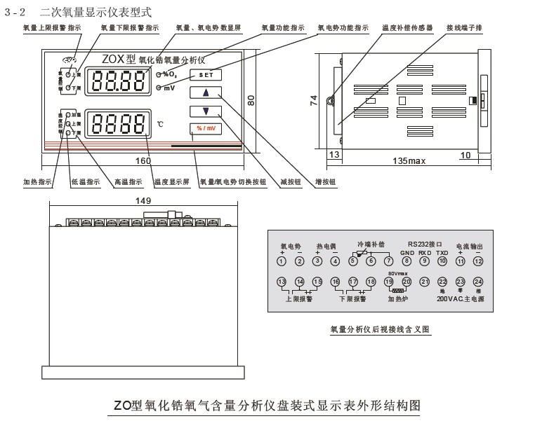 四、ZO型系列氧化锆氧气含量分析仪形式结构:
